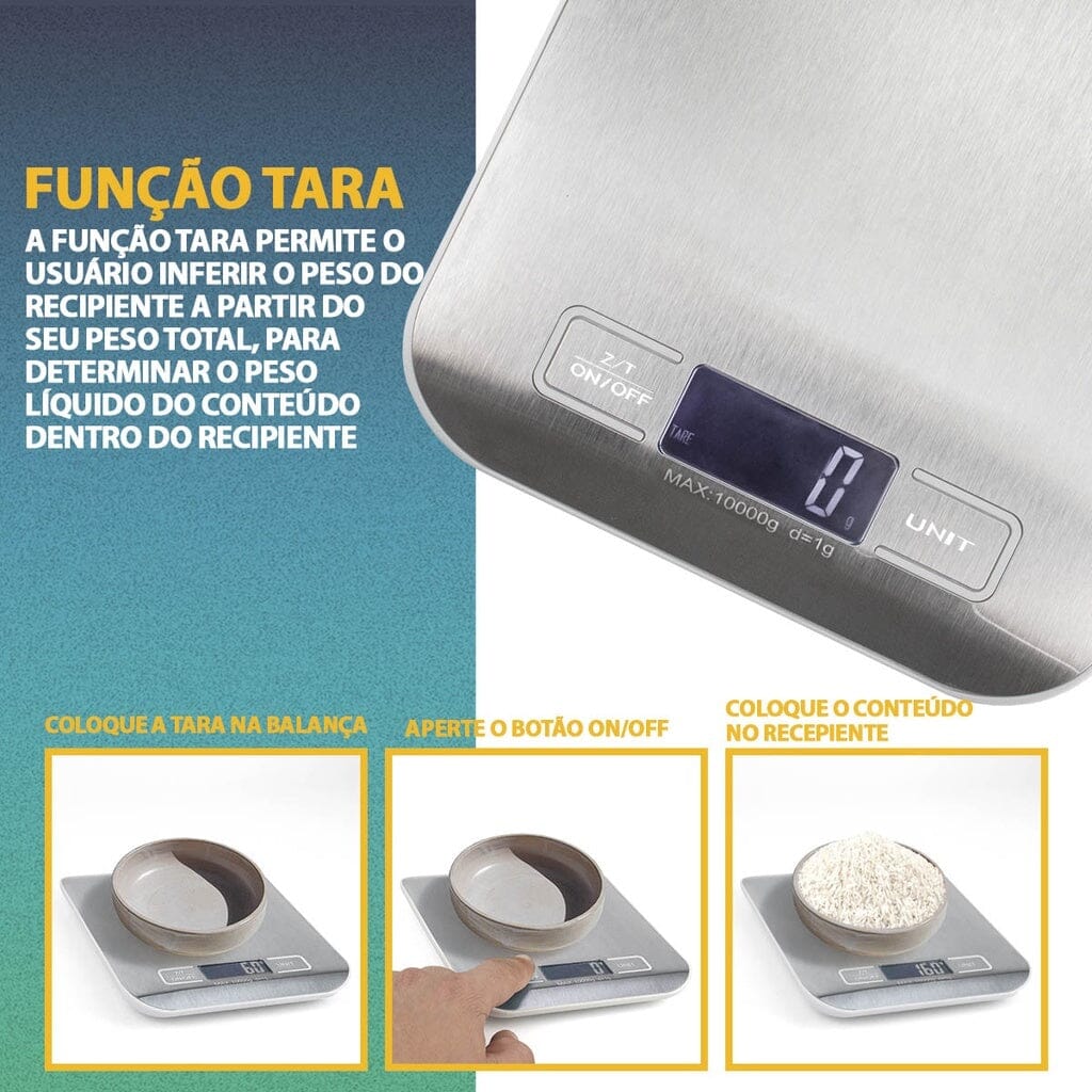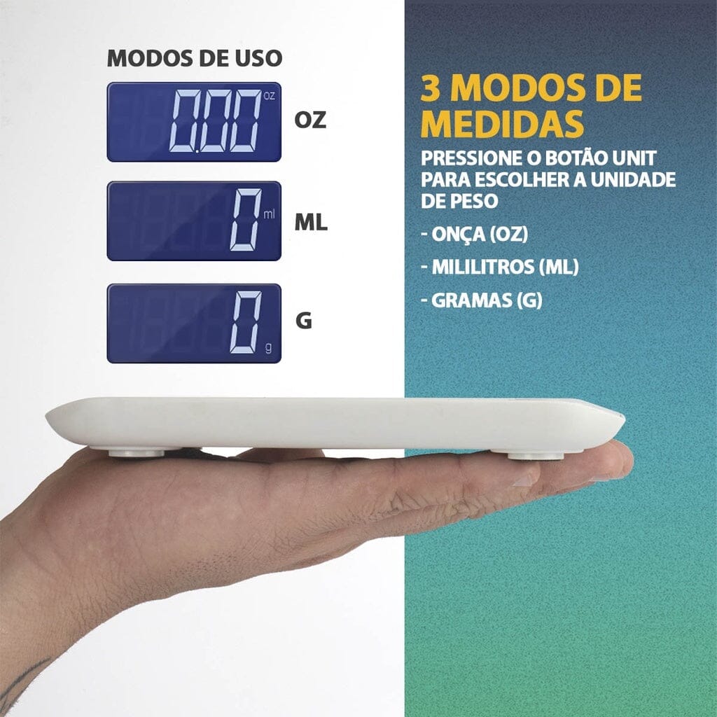 A Balança Digital Cuisine Master é perfeita para uso doméstico e pessoal. Ela foi criada para ajudá-lo rapidamente a medir ingredientes de receitas e refeições, carnes, alimentos e mercadorias com porções controladas. Um produto incrível para atingir seus objetivos dietéticos e de peso!