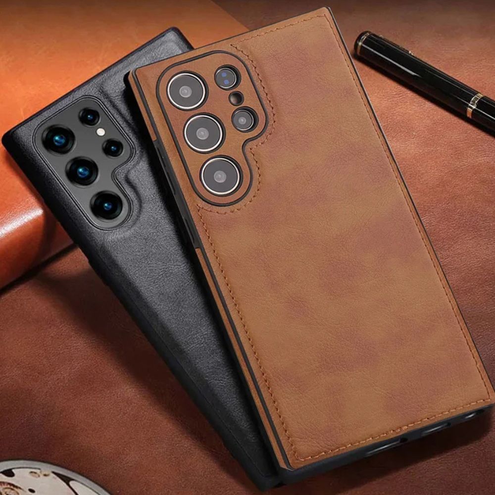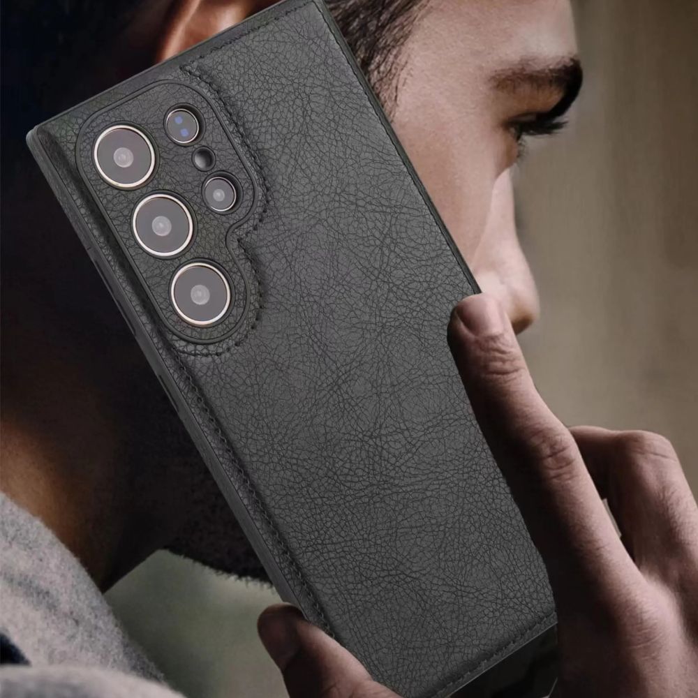 Feita com couro premium de alta qualidade, ela não só eleva a estética do seu Samsung, mas também proporciona uma sensação luxuosa ao toque.