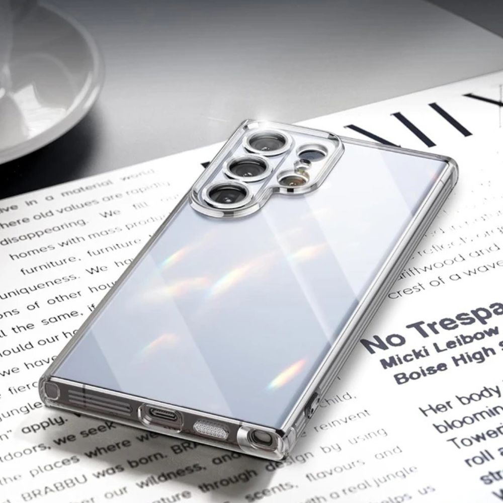 A Capa Samsung Magsafe Transparente com Proteção de Câmera combina um acabamento translúcido com bordas reforçadas, destacando a estética natural do seu dispositivo sem comprometer a proteção.