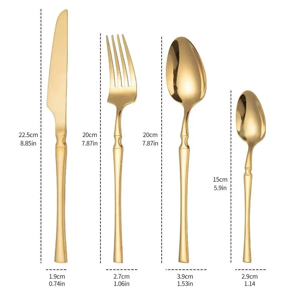 Transforme suas refeições em experiências premium com o Conjunto de Talheres Dourado 24 Peças de Aço Inoxidável.