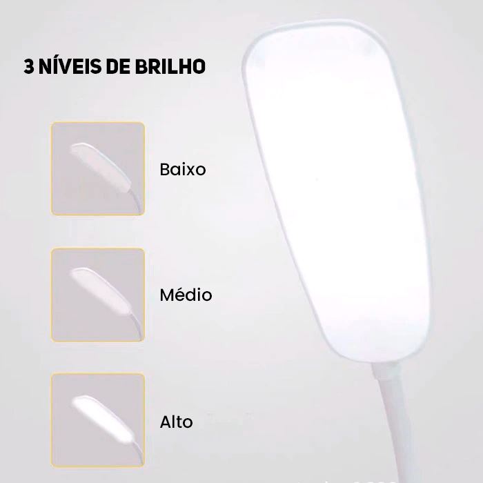 Dê ao seu espaço um melhor contraste e distribuição de luz, protegendo seus olhos usando nossa Luminária de Mesa LED White Light. Esta lâmpada tem controle sensível ao toque com três níveis ajustáveis de brilho, ideal para ler, trabalhar, estudar, elaborar planejamentos, exibir, acampar ou para uso de emergência. Adequado para dormitório universitário, escritório, quarto, sala de estar, quarto infantil, banheiro e muito mais . Possui flexibilidade de 360° e a lâmpada pescoço de ganso (flexível) permite que você acenda onde for necessário.A Luminária de Mesa LED White Light é dobrável e está equipada com um cabo de carregamento USB universal para que você possa carregá-la com um adaptador USB em um banco de energia, desktop ou laptop enquanto o acende. Proteja seus olhos do cansaço. Garanta o seu agora!