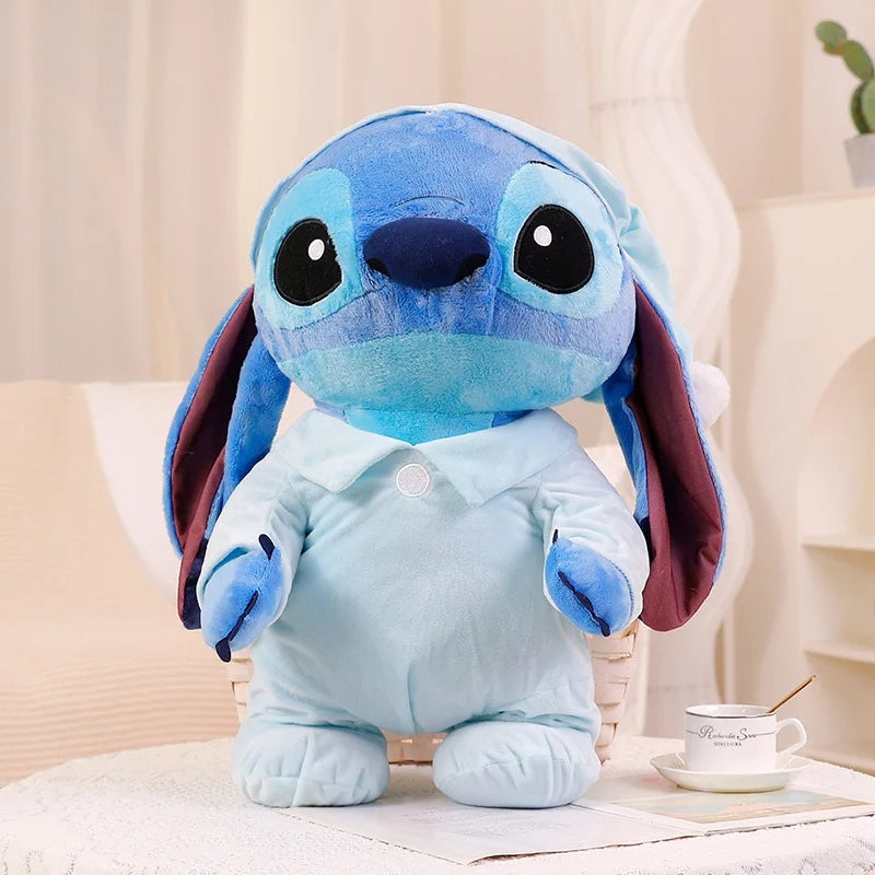 A Pelúcia Stitch com Pijaminha de Dormir está pronta para dormir com você. Vestido com um pijaminha super fofo, ele é o companheiro ideal para trazer conforto, aconchego e muito carinho para as suas noites.