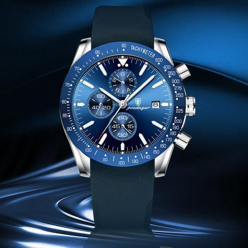 Com um marcante tom de azul e um visual elegante, este relógio é o acessório perfeito para homens de sucesso.
