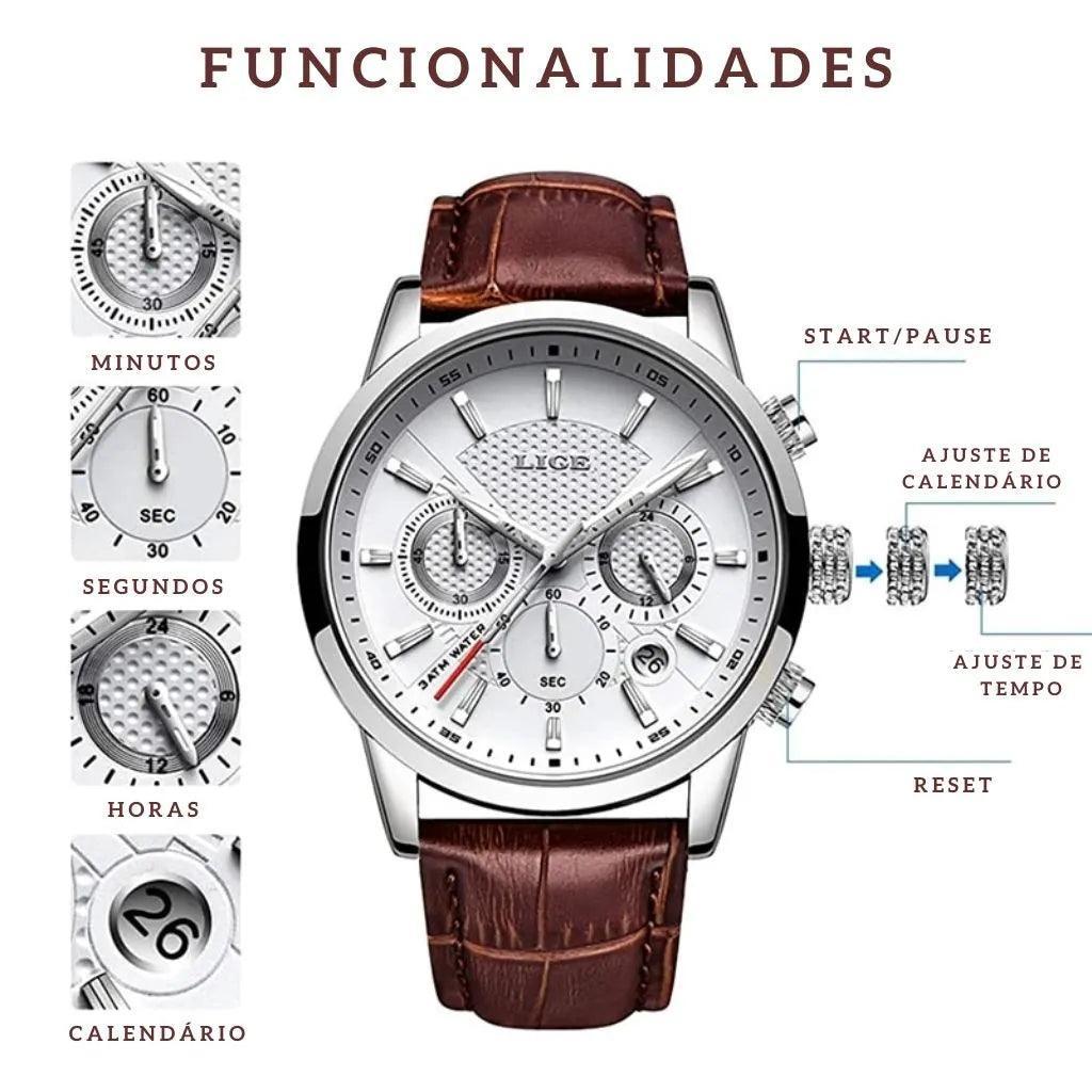 Uma verdadeira declaração de estilo e sucesso. Seja notado por onde passar com o Relógio de Couro Royal Master e conquiste o topo do seu jogo!