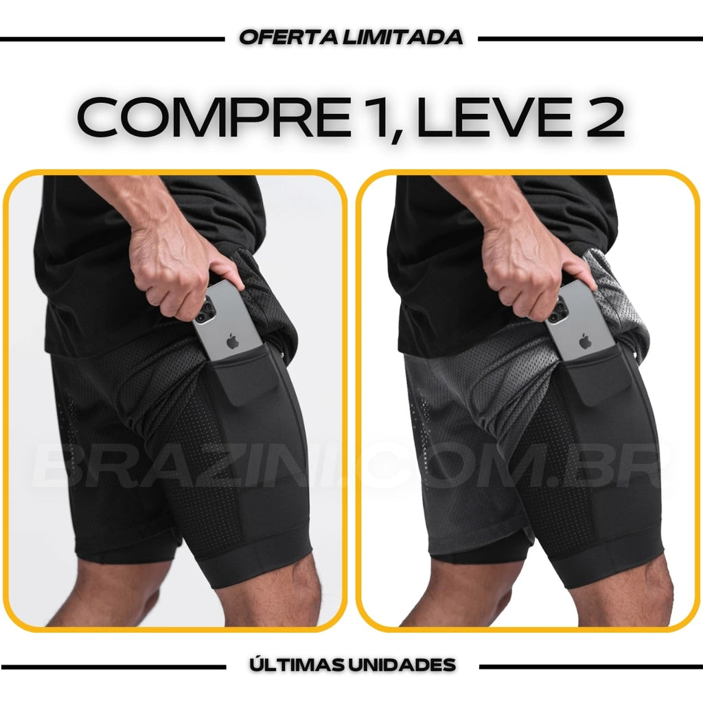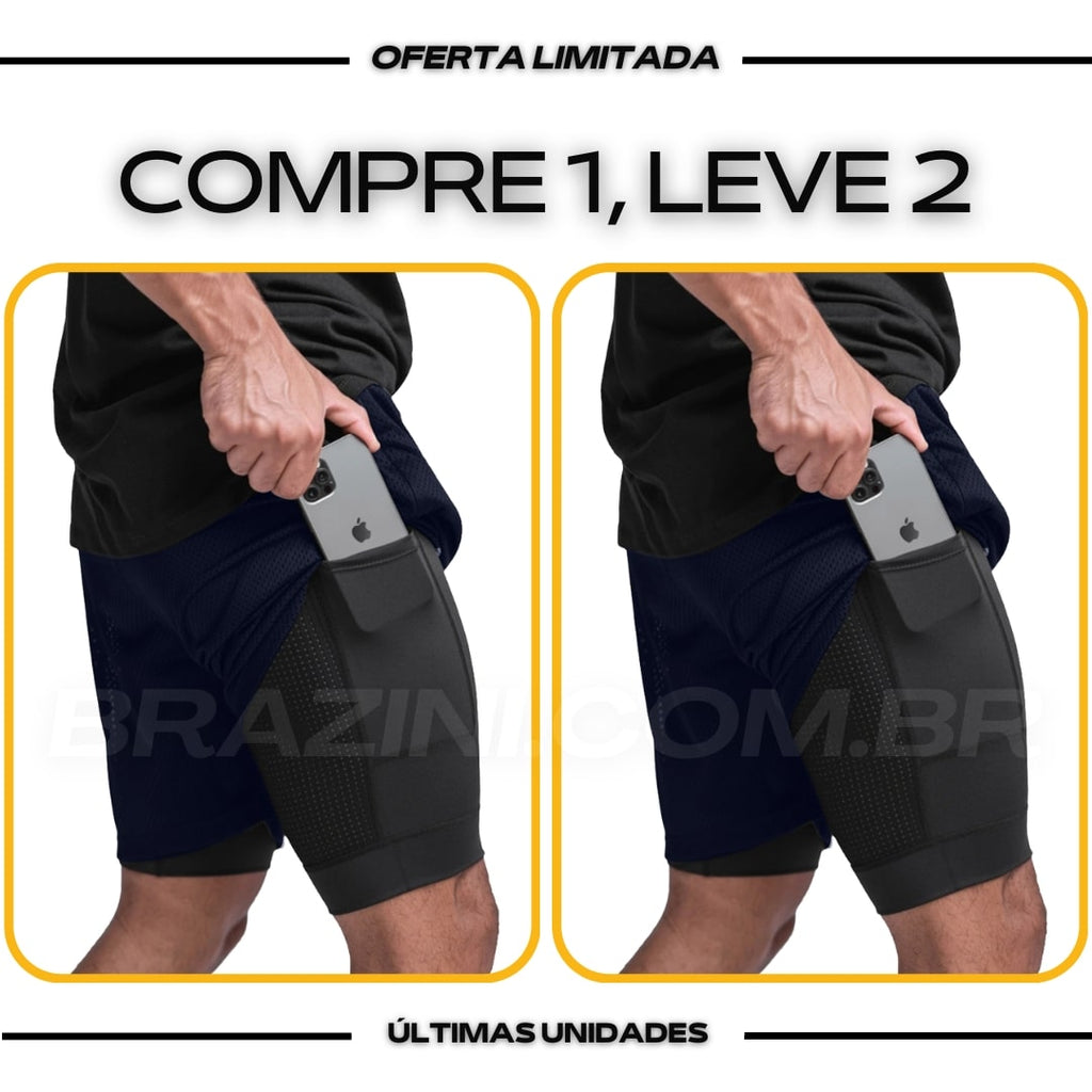 Shorts Dry-Fit™ de Compressão BZN - COMPRE 1 LEVE 2 + Brinde