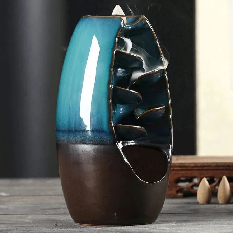 Ao acender o incenso cone, a fumaça desce em cascata, criando um espetáculo visual que fascina e acalma ao mesmo tempo.